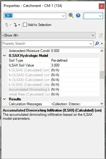 When using the ILSAX runoff method for catchments, properties for FI, FID, and Initial Rate are now available.