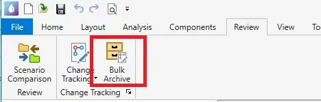 A new bulk archive feature is available for change tracking. With this, you will be able to archive a large number of items from the Change Tracking database. This will remove the items from the model database file and store the archived changes in an external database file. You can access this by going to the Review tab. Note that this does not replace the Archive feature in the Change Tracking manager.