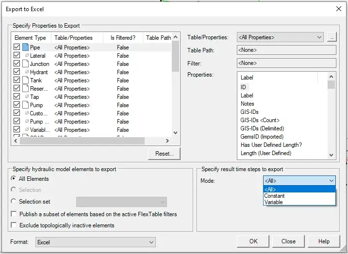An option has been added to the Export to Excel feature for the user to set the time steps that are exported to Excel.