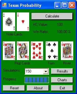 Calculates the Probability for the 133,784,560 possible Texas Hold’em hands. Ranks Hole Cards, shows Win Ratios and displays probabilities for any hand outcome using Monte Carlo estimation.