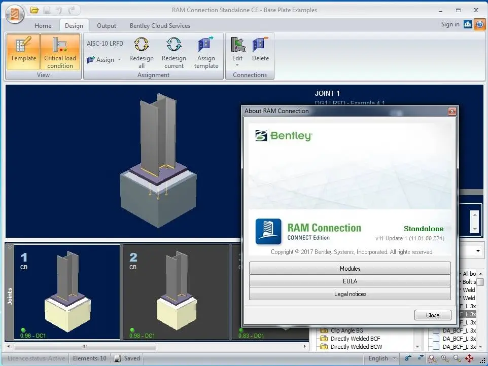Bentley Systems Incorporated, the leading company dedicated to providing comprehensive software solutions for sustaining infrastructure, has released the 11.01.00.224 version of RAM Connection CONNECT Edition. This software offers the best flexibility for the design of different shear, moment, braces, splices and base plates connection types.