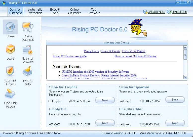 Rising PC Doctor, professional and smart security tool to computer users.With its seven key functions of automatic malware analysis, immunization of USB storage devices, ability to repair Microsoft Internet Explorer & Windows, Trojan Behavior Detector & Blocker, protection against malicious websites, Internet Explorer protection and Trojan Download blocker, Rising PC Doctor will greatly enhance your protection against malware and cyber threats.