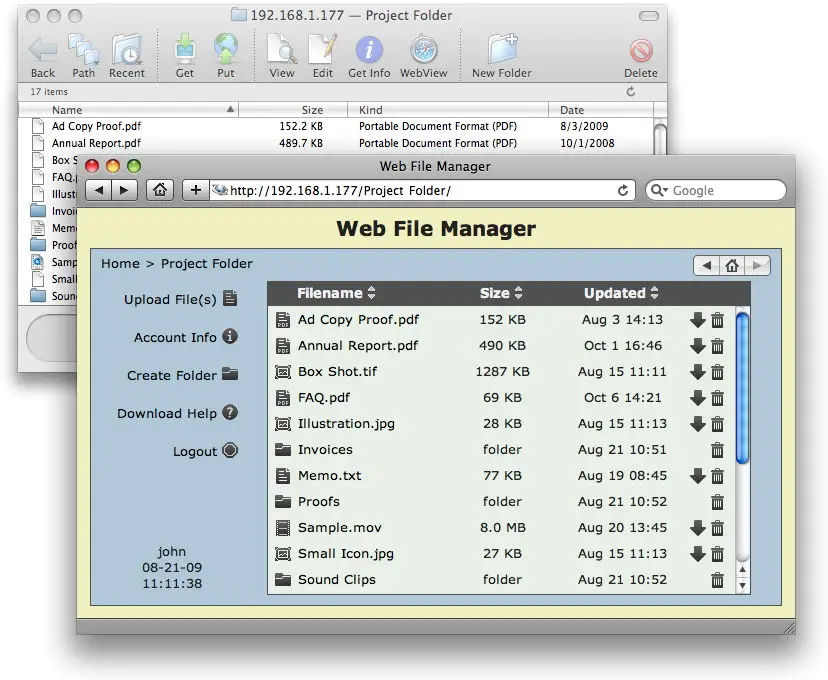 Key features include built-in, easy to administer user accounts, integrated Web file transfers, file upload notification, extensive security options, blazing performance, and more… Also included is a remote server activity monitor, Rumpus FileWatch, and a server statistics widget, RumpusStat.