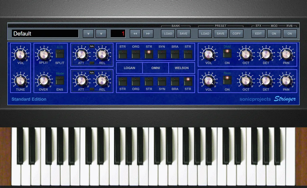 The Stringer contains top notch quality sample sets of the ARP Omni, the Logan String Melody II and the Welson Symphony in two engines that can be mixed and layered.