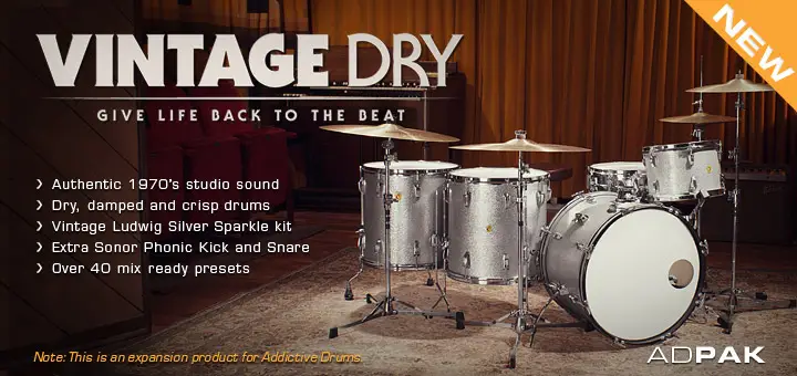Today, there is a revival of that 70s sound by chart-topping contemporary artists like Daft Punk, Miike Snow and Justice. And with our Vintage Dry ADpak, you too can have those glorious drum sounds!