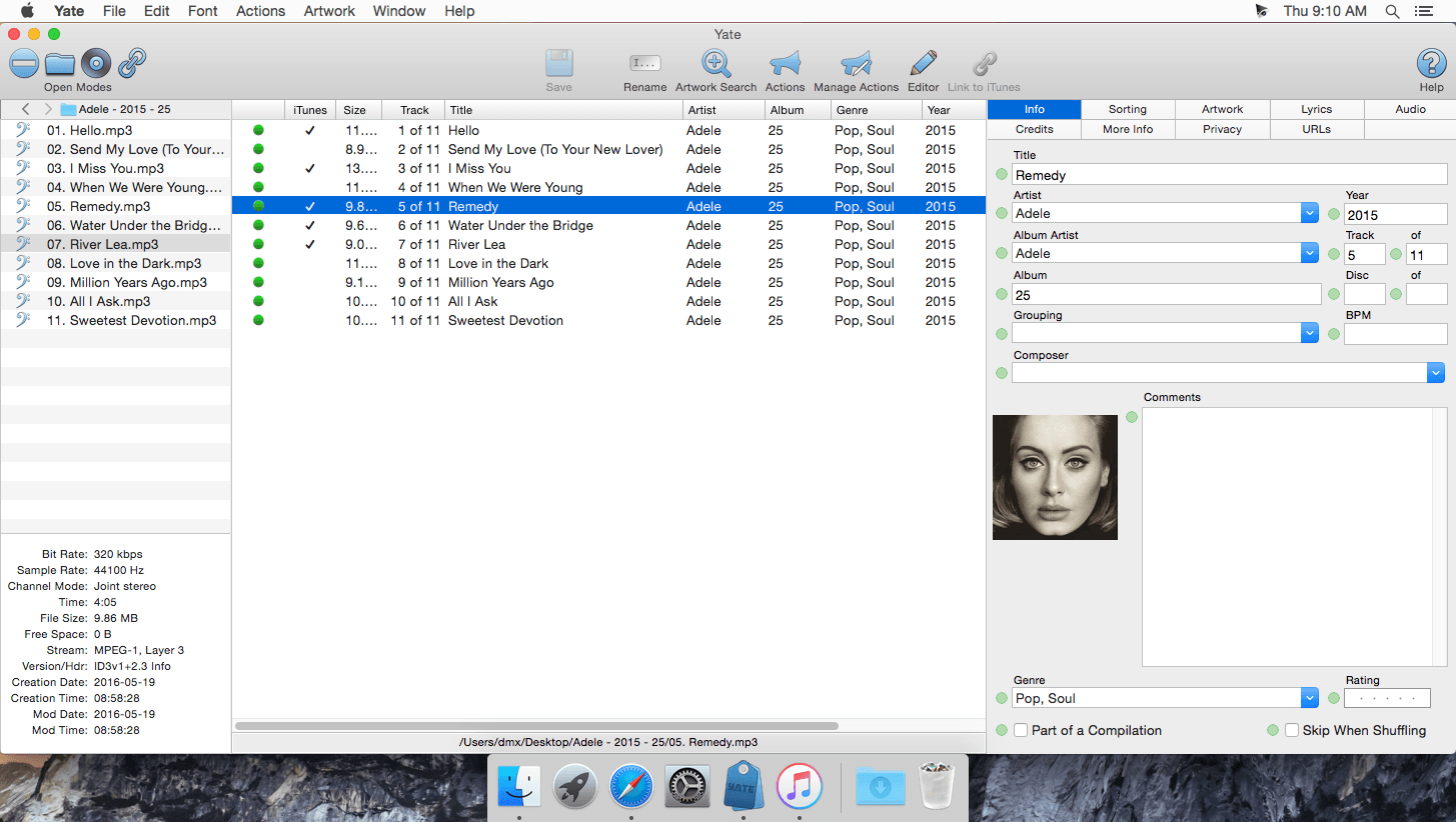 Yate was developed for people who are serious about tagging and organizing their audio files. The application was designed from the ground up for Mac users. It is a 100% Cocoa-written application and uses its own tagging library. Yate will tag MP3, M4A, MP4 (single track), AIFF, FLAC, WAV and DSF files.