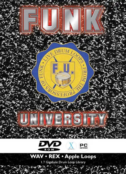 Grab your enrollment form and get to admissions, because classes are filling up fast! If you thought you knew what funk was all about, you'd better think again. F.U. is all about funk, and the professors here smell nasty! We're offering specialized courses in live, funk drumming here. No basses, no guitars, just the funkiest skins you've ever heard all in WAV, REX and Apple Loops AIFF files. Our professors are top session pros (Including Keith Harris of Black Eyed Peas), they're snap on, givin' you tons of variation, gangs of different kits, fills, and hot, dripping funk. Elevate your career and get the degree you've always wanted by attending classes at F.U.