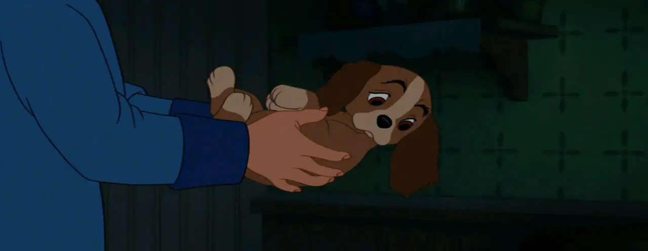 Lady, a golden cocker spaniel, meets up with a mongrel dog who calls himself the Tramp. He is obviously from the wrong side of town, but happenings at Lady's home make her decide to travel with him for a while. This turns out to be a bad move, as no dog is above the law.