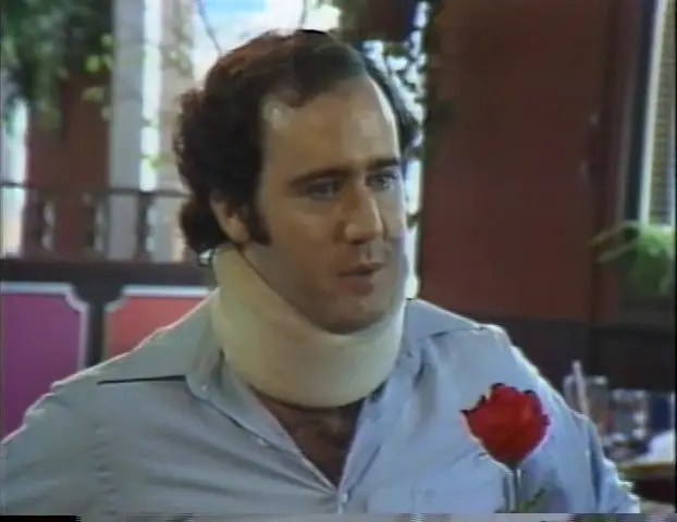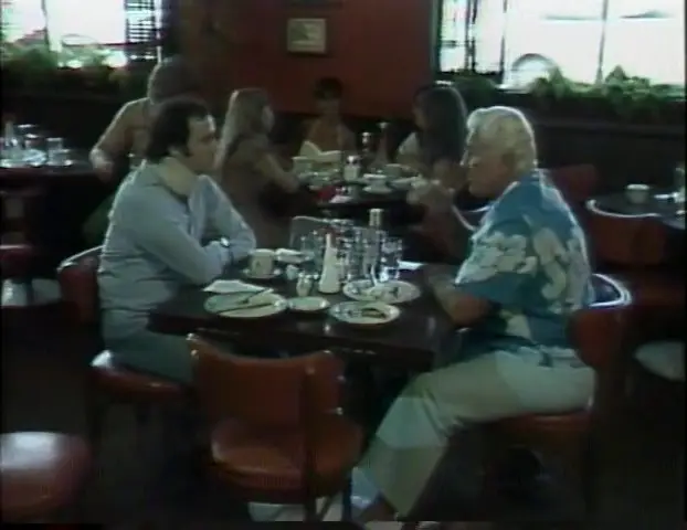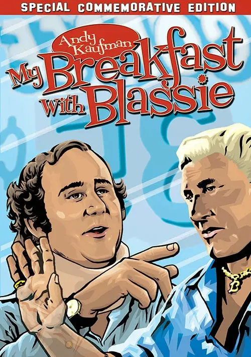 Andy Kaufman's ridiculous parody of "My Dinner With Andre" sets Andy Kaufman, playing himself, at an early-morning breakfast with former wrestling champion Fred Blassie. Andy and Fred discuss wrestling (Andy's success with wrestling women is discussed at length), then change the topic to techniques for keeping your hands clean, why not to eat pancakes or waffles, giving autographs to fans, and other topics not nearly as intellectual as the ones discussed in My Dinner With Andre. As with much of Andy Kaufman's work, My Breakfast with Blassie is extremely self-deprecating, showing Kaufman as being timid yet egotistical, using his role as Latka on Taxi as a way of trying to impress people. The video explores the egotism that develops with stardom, as well as the desire to lead a private life: the double-edged sword of being a recognizable celebrity.