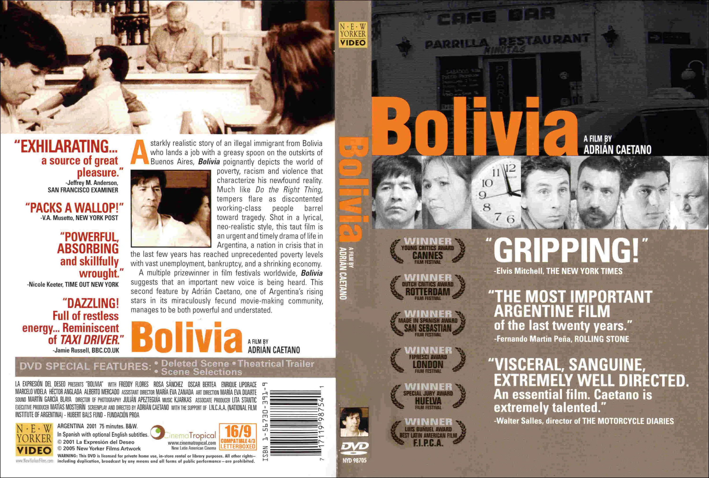 Argentina's national cinema emerged during the go-go 1990s when the country enjoyed a strong, though ultimately unsustainable, economic boom. The country's film industry benefited from the economic upturn, and produced a generation of young filmmakers who gained increasing attention in the international art-house circuit. Caetano is one of the leading lights of this generation, and his debut feature "Pizza, Beer, and Cigarettes" (1998) is one of the most influential Argentine films of the 90s. "Bolivia" was an art-house hit as well, winning the Young Critics Award at Cannes as well as prizes at numerous international film festivals. I have not had the opportunity to see many of the New Argentine films, but if "Bolivia" is any indication, I have been missing out on something pretty special.