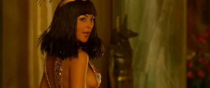 The Egyptian queen Cleopatra (Monica Bellucci) bets against the Roman Emperor Julius Caesar (Alain Chabat) that her people are still great, even if the times of the Pharaohs has long passed. She vows (against all logic) to build a new palace for Caesar within three months. Since all her architects are either busy otherwise or too conservative in style, this ambivalent honor falls to an architect named Edifis (Jamel Debbouze). Edifis is to build the palace and be covered in gold or, if not, his fate is to be eaten by crocodiles. Edifis calls upon an old friend to help him out: the fabulous Druid Getafix (Claude Rich) from Gaul, who brews a fantastic potion that gives the drinker supernatural strength. In order to help and protect the old Druid, Asterix (Christian Clavier) and Obelix (Gérard Depardieu) accompany him on his journey to Egypt. Asterix falls in love with an Egyptian woman named Guimieukis (Noémie Lenoir).