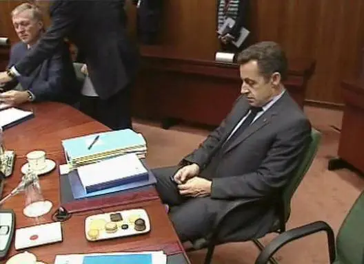 (One year of France ex-President Presidency description with a smiling eye.)